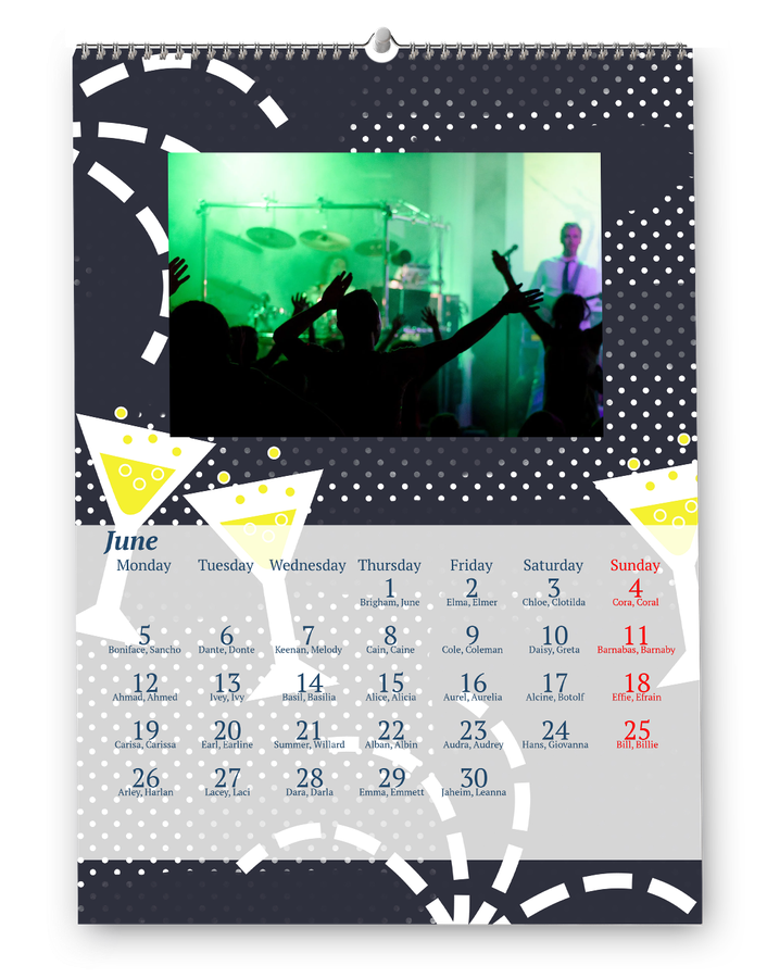 Create your own calendar: add birthdays, anniversaries and holidays, your favourite photos and start on the month of your choice. Our calendars are printed on top-quality paper and bound with a sturdy spiral binding.